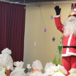 先生たちの劇の後には、お待ちかねのサンタさんが登場してくれましたよ!