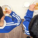 焼きあがったクッキーを見て、「これ僕のー!」「おいしそう♪」と嬉しそうに、クッキーを食べていました