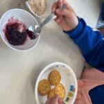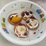 好きなフルーツを乗せたり、ジャムやホイップを乗せたりして楽しくクッキングを行いました