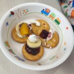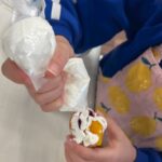 ホイップは自分で好きな量をしぼり、上手にクラッカーに飾り付けをしていました