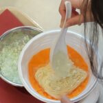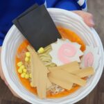 学生のみなさんがラーメンの具材を用意して来てくれたので、子どもたちは麺の入った器を持って自分だけのラーメン作りをしました