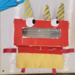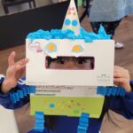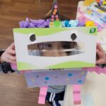 4歳児クラスはティッシュの箱を使い、身体付きのお面を作りました