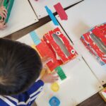 5歳児クラスもティッシュの箱を使い、全て自分でパーツを切って仕上げました