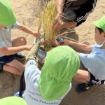 5歳児さんが6月頃から育てた稲ができたので稲刈りをしました!!
