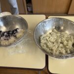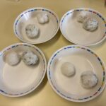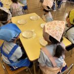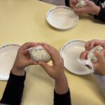 5歳児さんが育てたお米で幼児さんがおにぎりを作りました!! 5歳児さんが育てたことを伝えると「すごーい」「知ってる!お外でみた!」と言っていた子どもたち。 「どんな形にしよう~」「あったか~い」と楽しみながらおにぎりをにぎっていましたよ! 「きれいな丸の形になった~」「ハートにしたよ」と満足気な様子♫♫ 頑張ってにぎったおにぎりは給食で食べました♪ 自分で作ったのでいつもよりパクパクと食べて「おいしーい!!」と満面の笑みでした!!