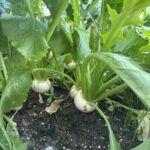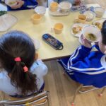 4歳児クラス カブ 収穫できたので給食のお汁に入れてもらいました☆ 自分たちで育てたカブはいつもよりもおいしくてみんな喜んでいましたよ♫