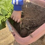 幼児クラスさんが冬野菜を育てています。 3歳児クラス 大根 まだ収穫には少し早いのでもう少し大きくなるまで頑張ってお水やりをしています♫